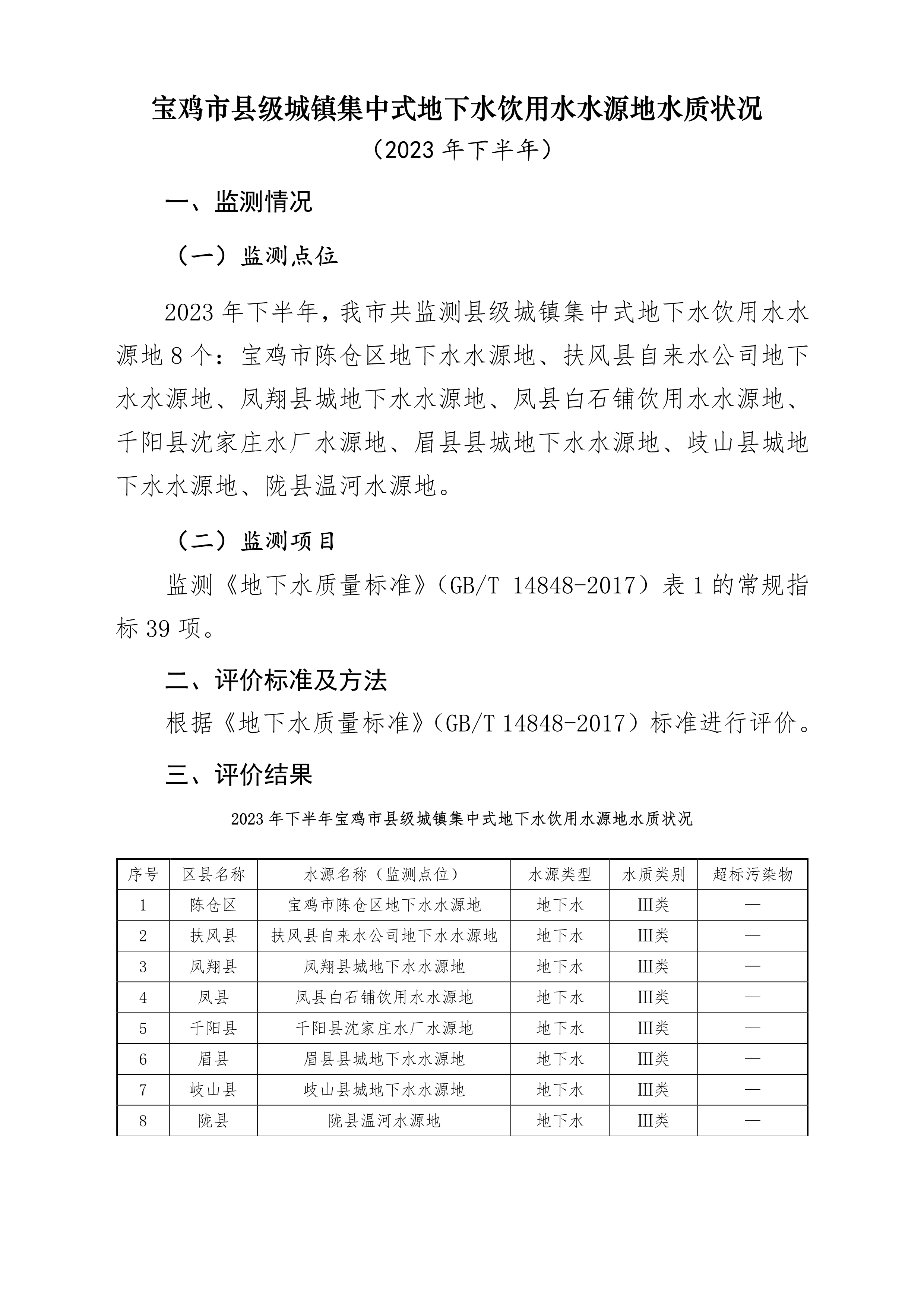 网赌平台县级城镇集中式地下水饮用水水源地水质状况(2023年下半年)