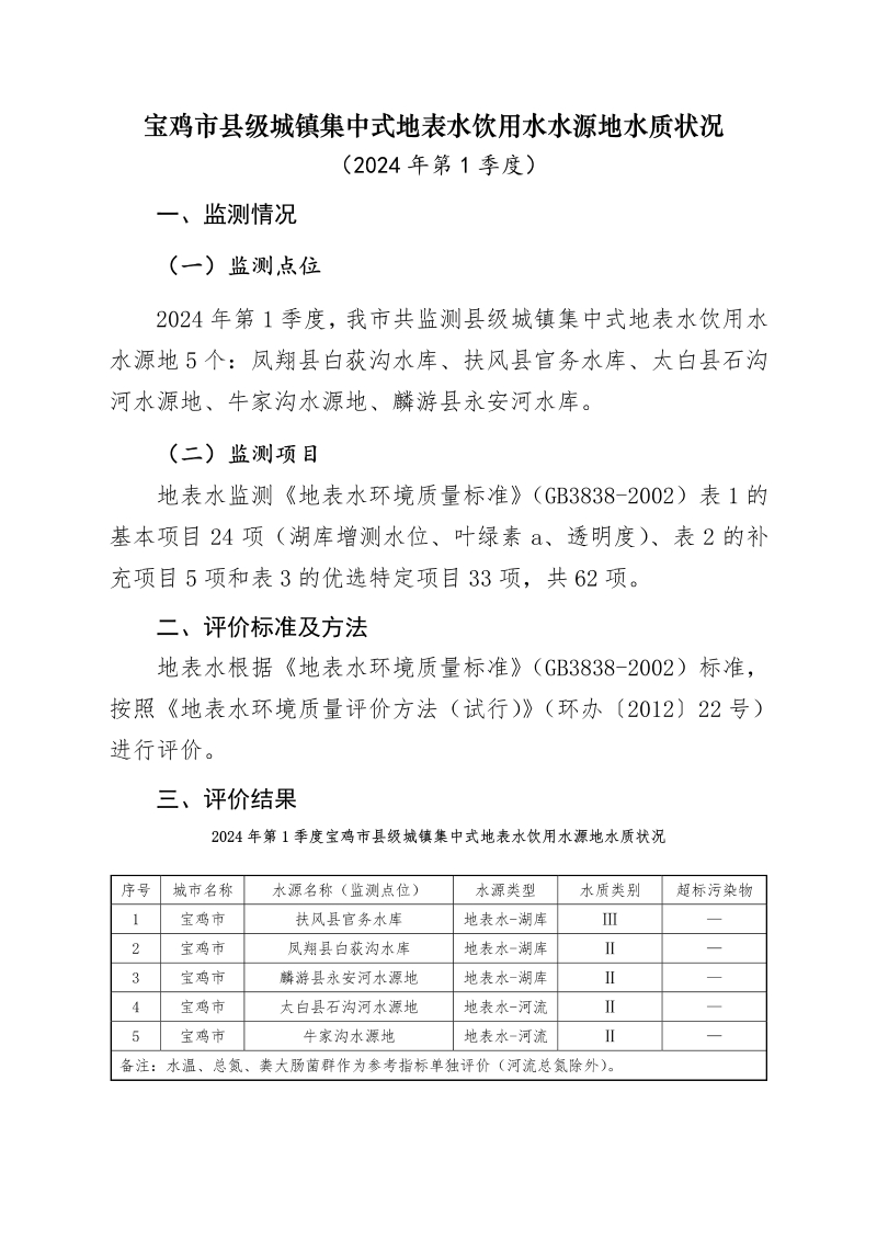 网赌平台县级城镇集中式地表水饮用水水源地水质状况(2024年第1季度)