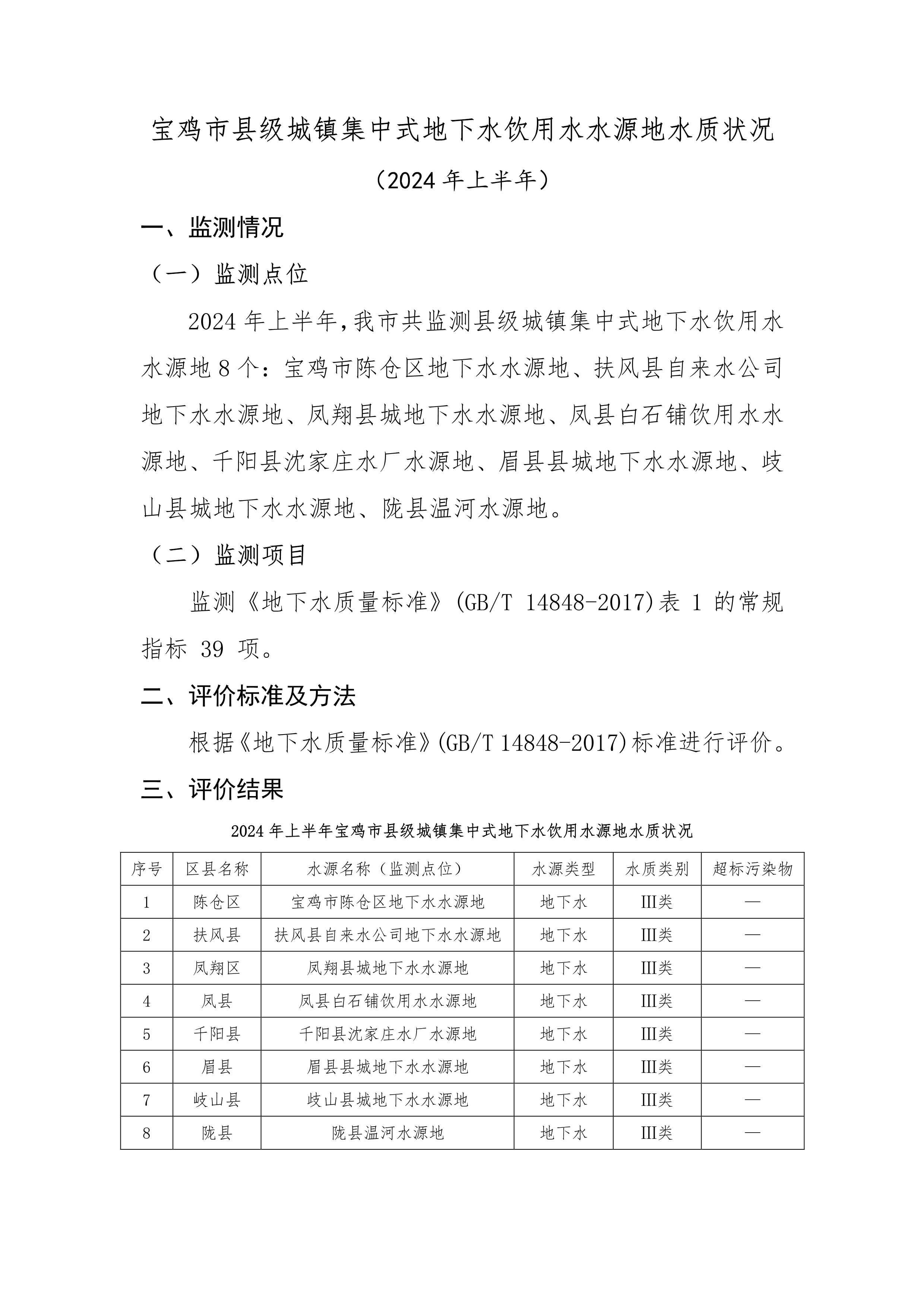 十大网赌平台排行榜县级城镇集中式地下水饮用水水源地水质状况(2024年上半年)