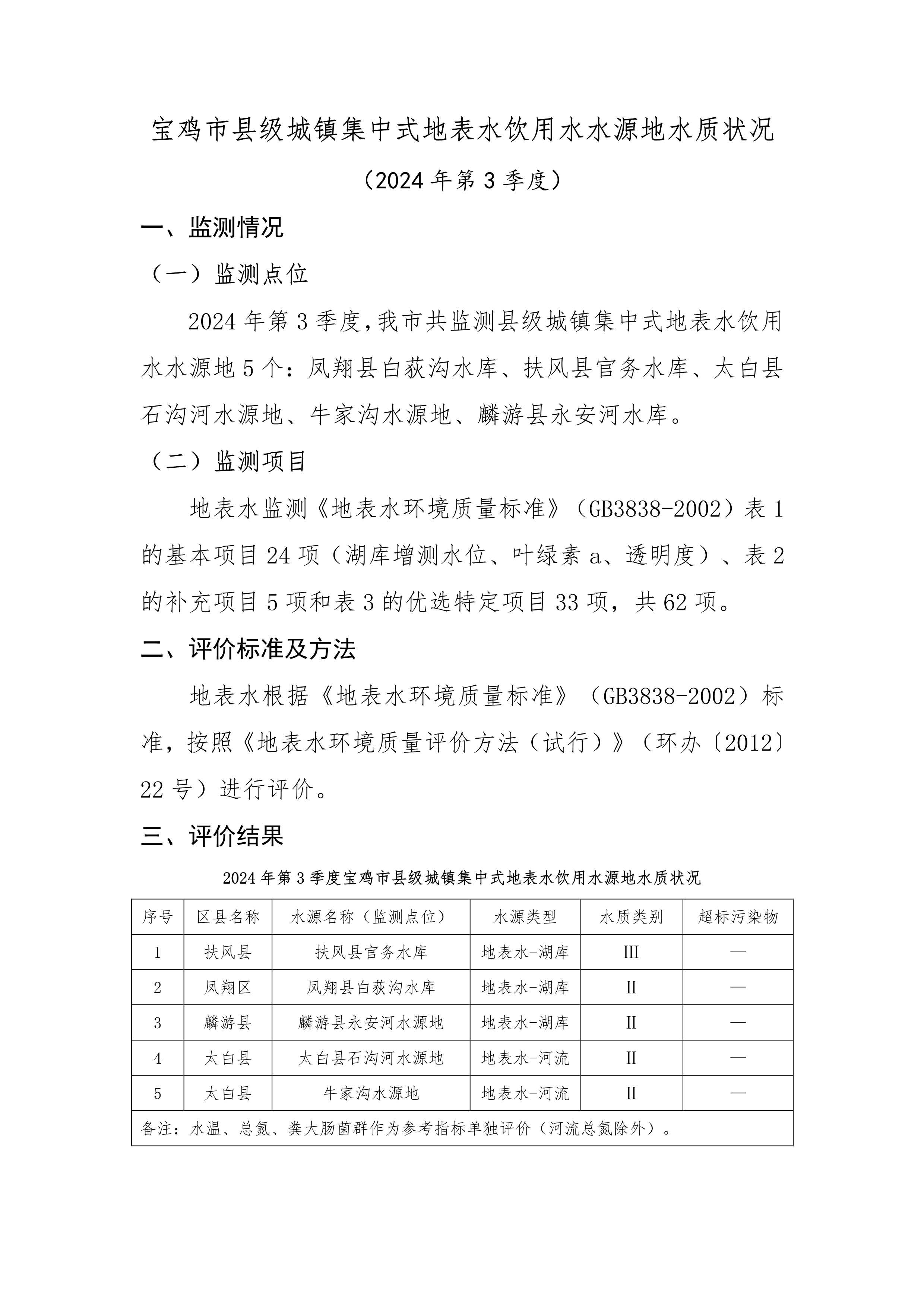 网赌平台县级城镇集中式地下水饮用水水源地水质状况(2024年第3季度)