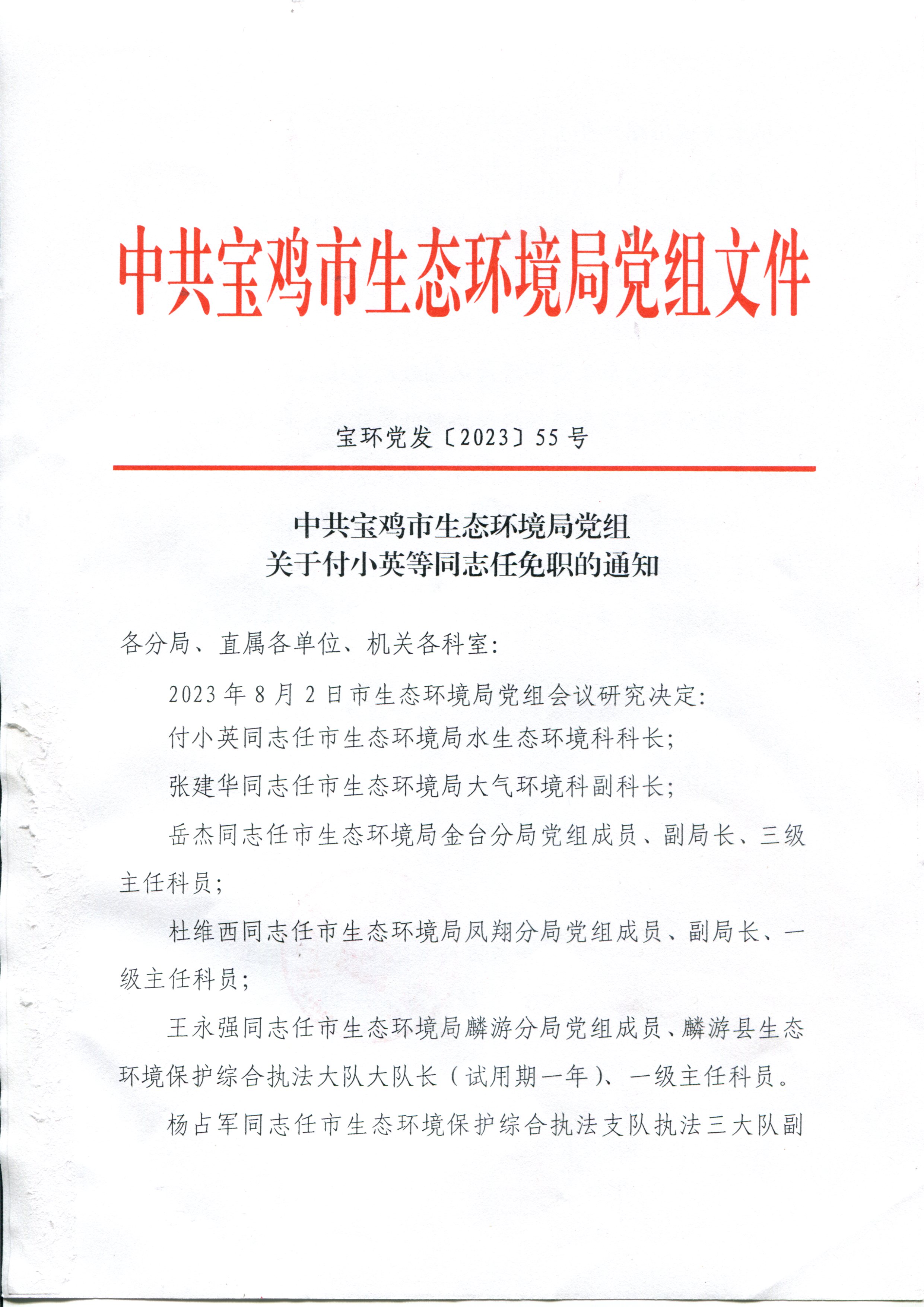 关于付小英等同志任免职的通知