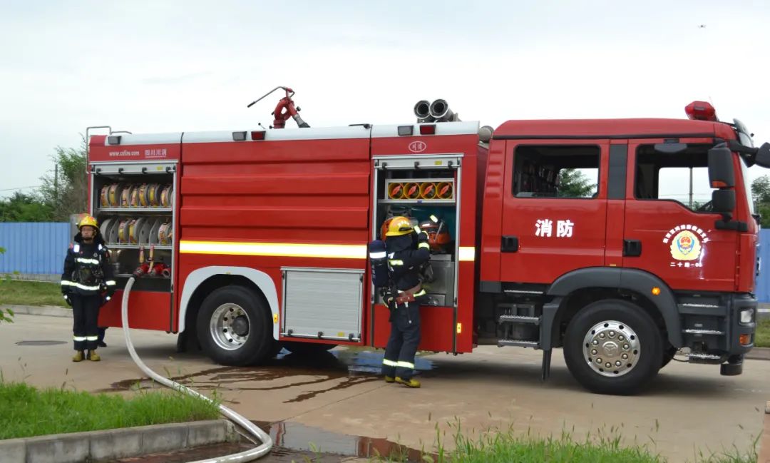 “事故”发生后,应急演练指挥部依据突发环境事件应急预案,立即启动预警响应措施,110警车、119消防车、环境应急监测车等车辆快速驶入,应急抢险组、现场处置组、事故调查组等应急队伍立即集结,紧张有序进入事故现场。