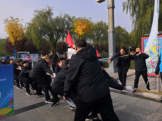 10月10日,凤翔区举办“互助保障杯”职工拔河比赛暨趣味运动会,全区三十余支代表队参加。网赌平台凤翔分局全体干部职工参与拔河和四项趣味比赛。