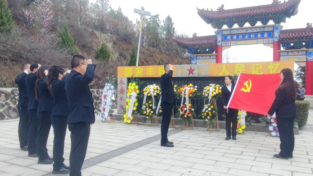 在庄严肃穆的纪念碑前,分局党组书记、局长王陇刚带领全体党员干部敬献鲜花,随后全体人员向革命先烈三鞠躬,表达对革命先烈的无限崇敬和深切缅怀。支部委员方伟同志带领党员干部面对鲜红的党旗和革命烈士纪念碑,庄严地举起右手,满怀激情重温入党誓词,一句句铿锵有力的承诺,一声声发自肺腑的话语,真挚情感瞬间涌上心头。