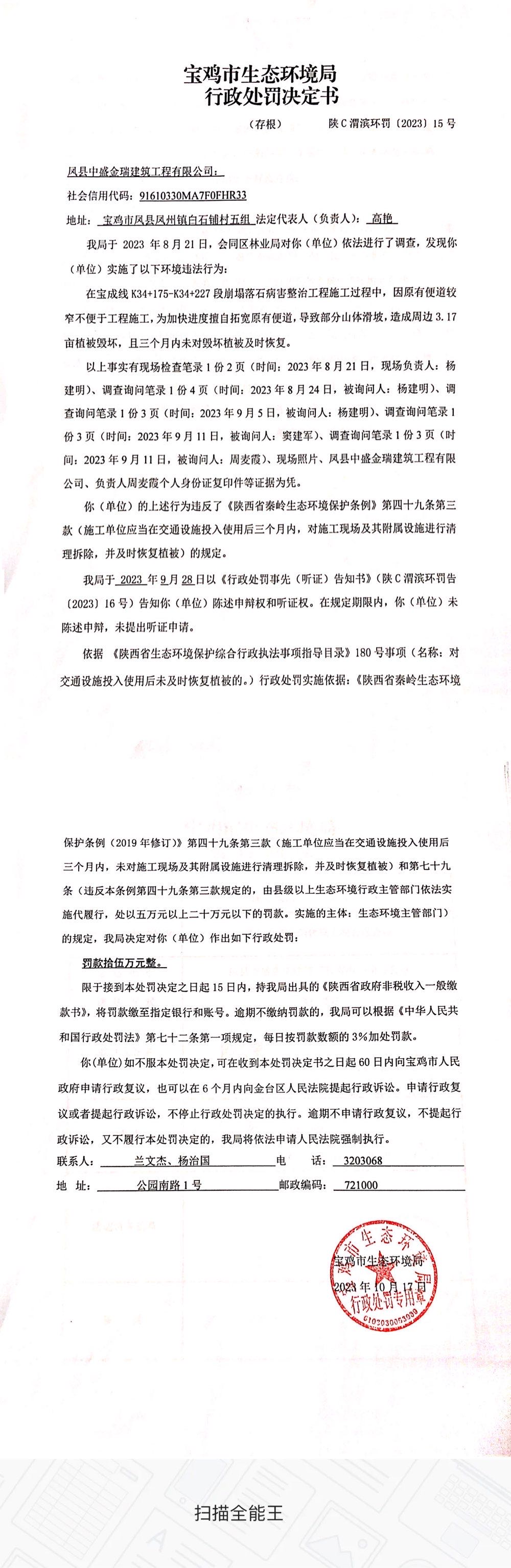 网赌平台行政处罚决定书(陕C渭滨环罚〔2023〕15号)