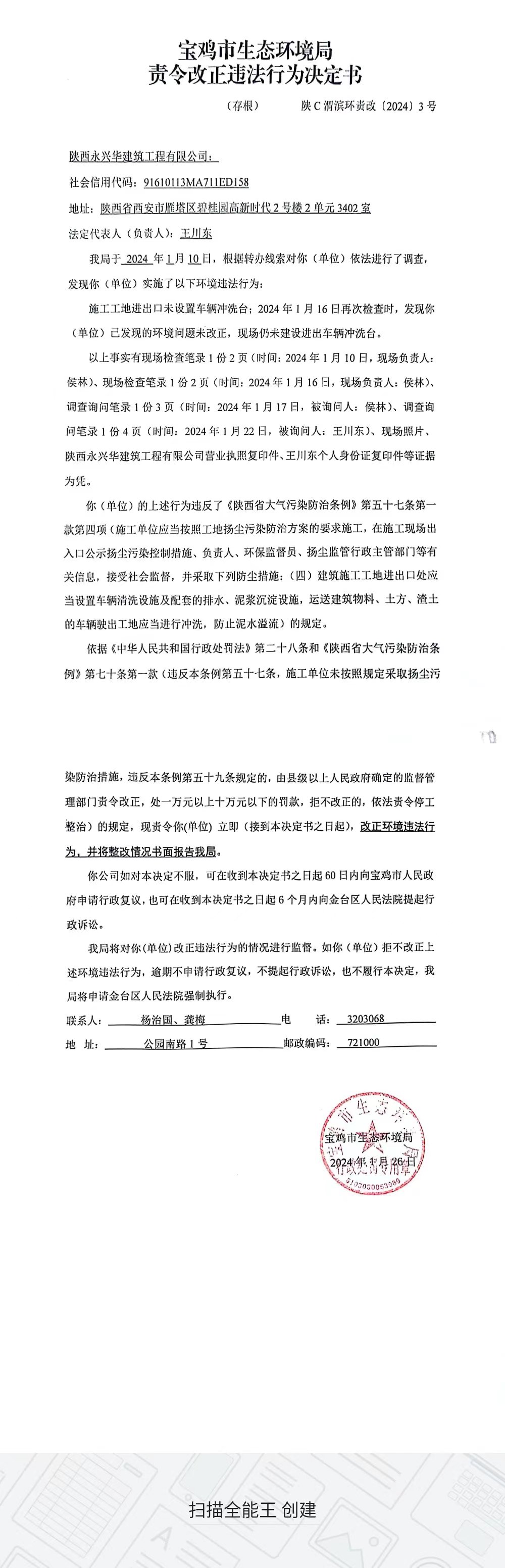 网赌平台责令改正违法行为决定书(陕C渭滨环责改〔2024〕3号