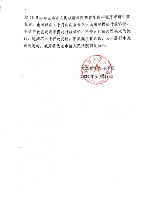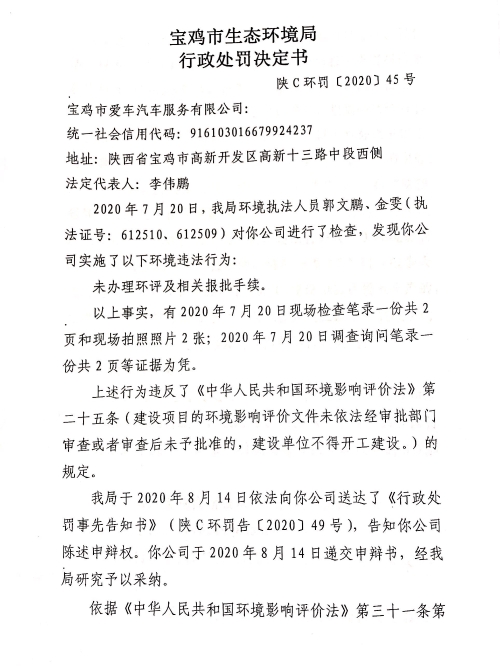 十大网赌平台排行榜行政处罚决定书 陕C环罚[2020]45号