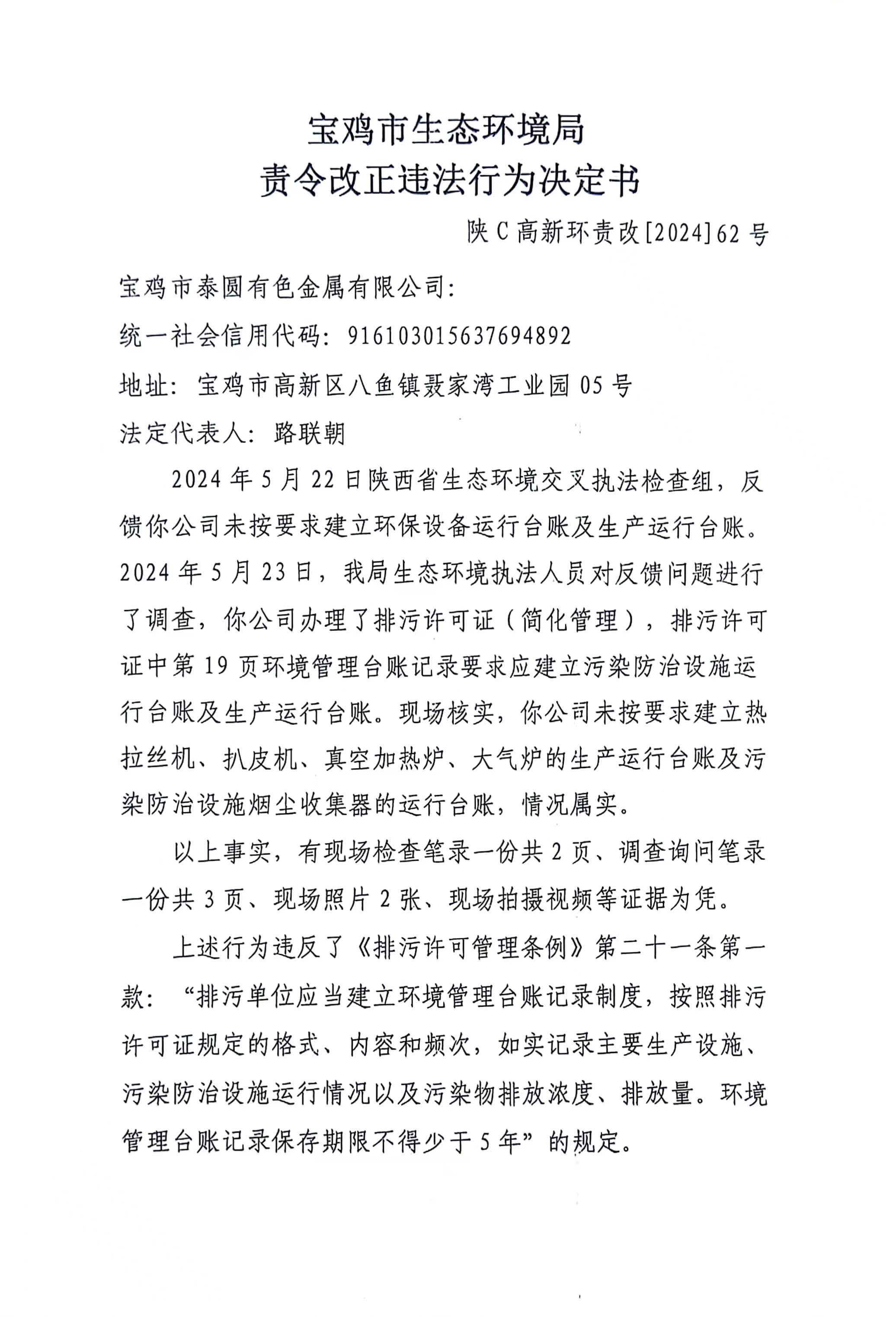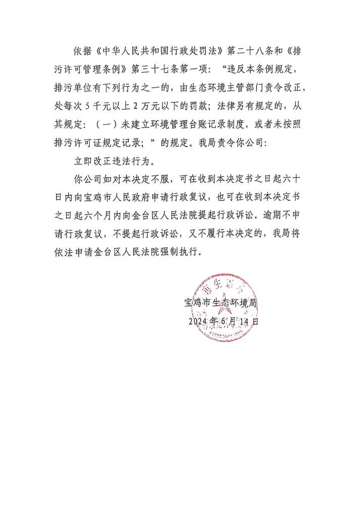 十大网赌平台排行榜责令改正违法行为决定书(陕C高新环责改〔2024〕62号)