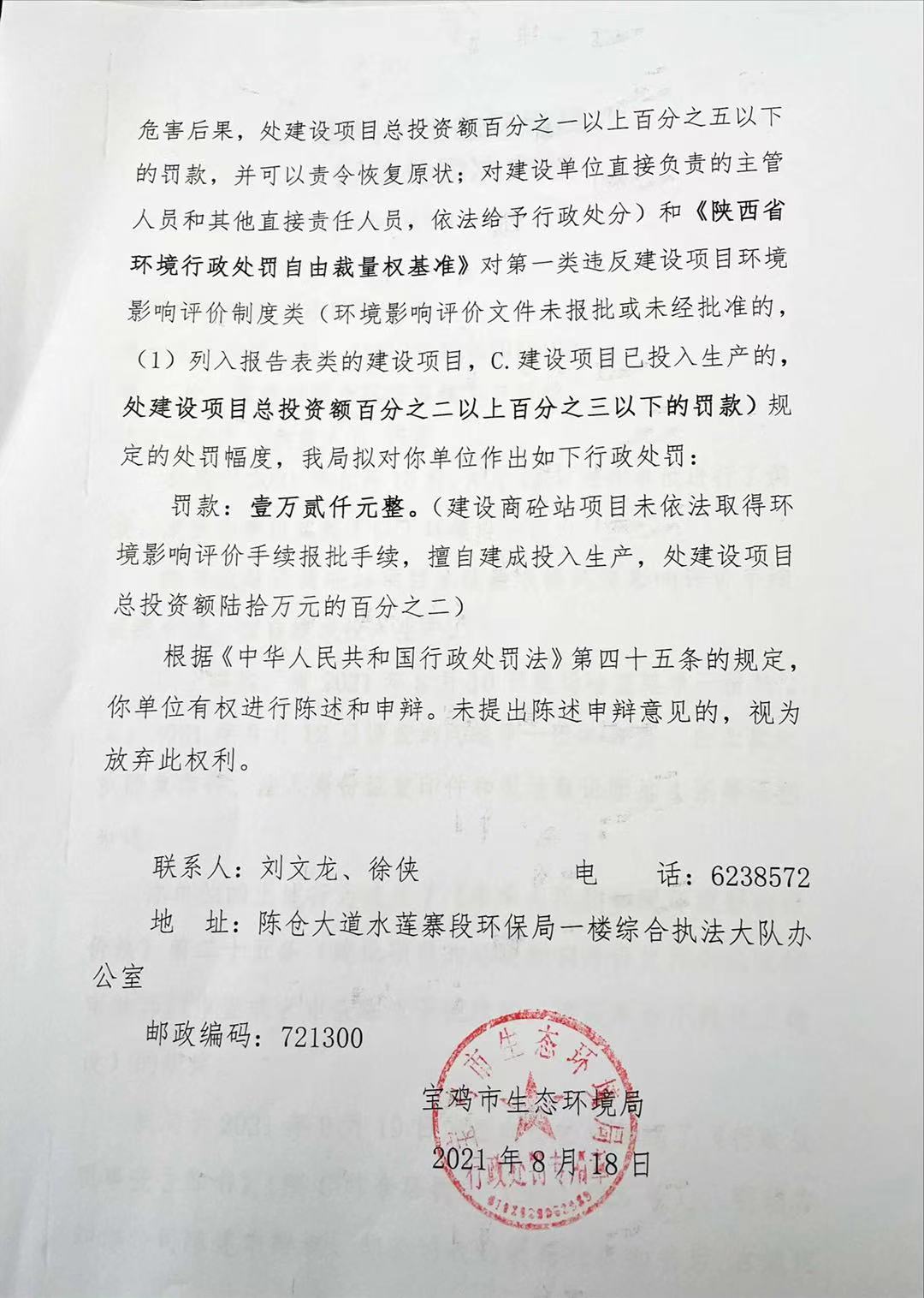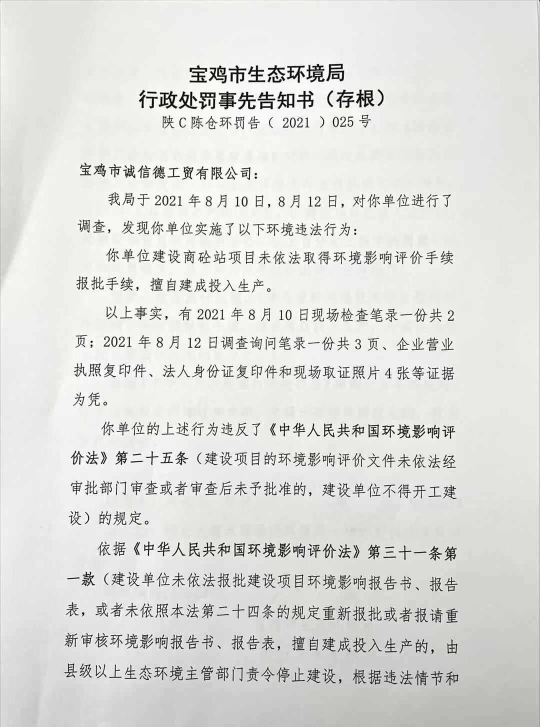 十大网赌平台排行榜 行政处罚事先告知书(存根) 陕C陈仓环罚告( 2021 )25号