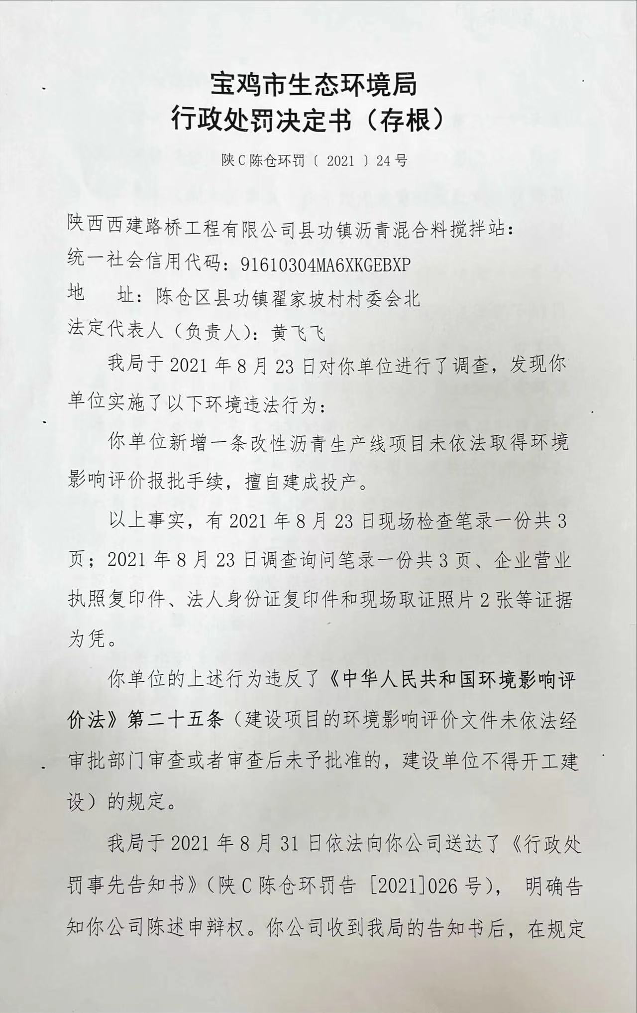 网赌平台 行政处罚决定书(存根) 陕C陈仓环罚〔 2021 〕24号