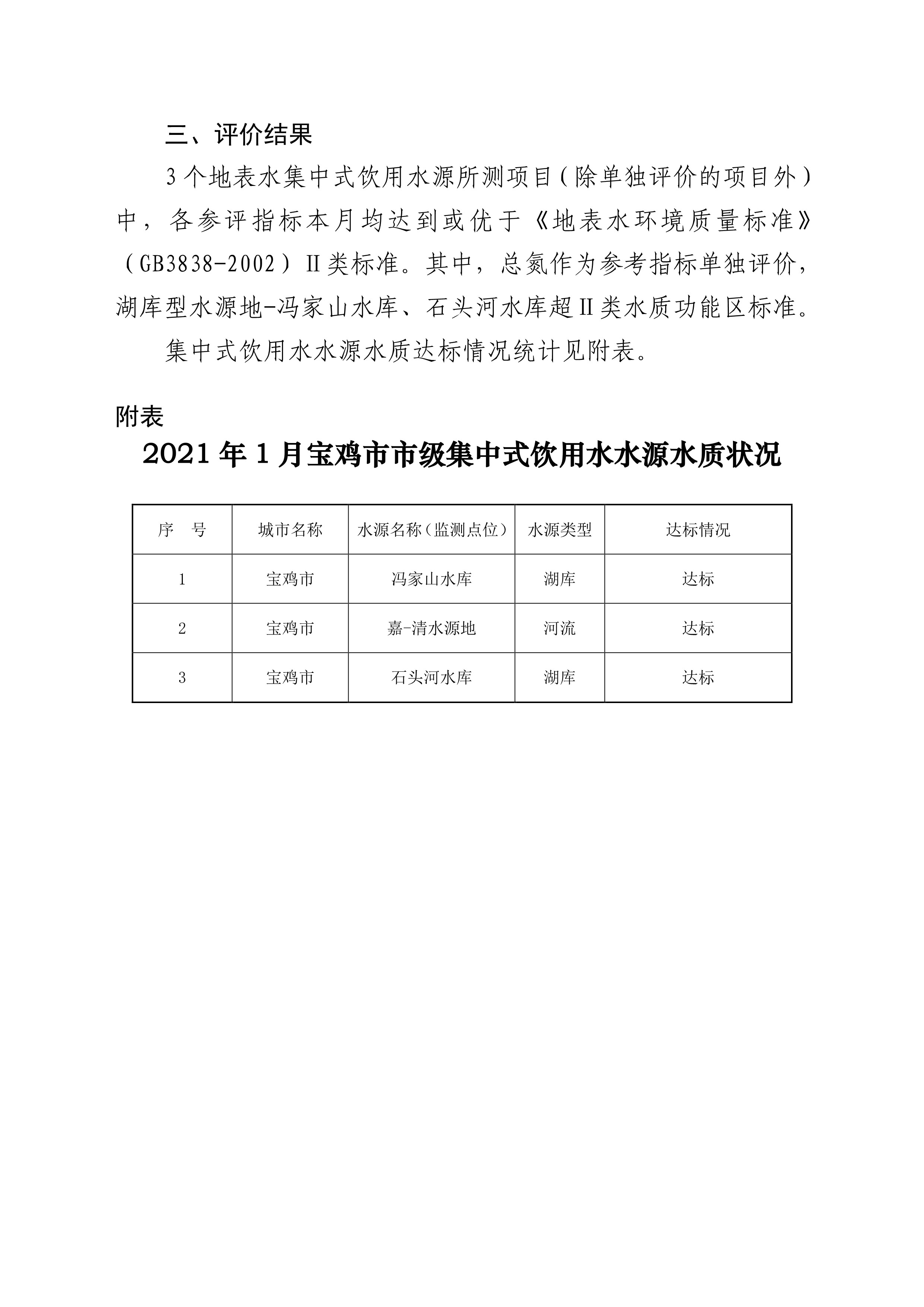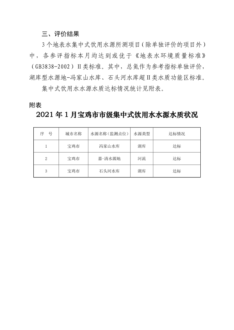 网赌平台市级国控集中式生活饮用水水源水质状况报告(2021年1月)