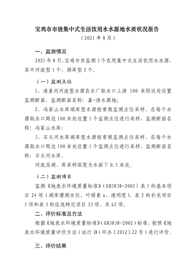 十大网赌平台排行榜市级集中式生活饮用水水源地水质状况报告(2021年8月)