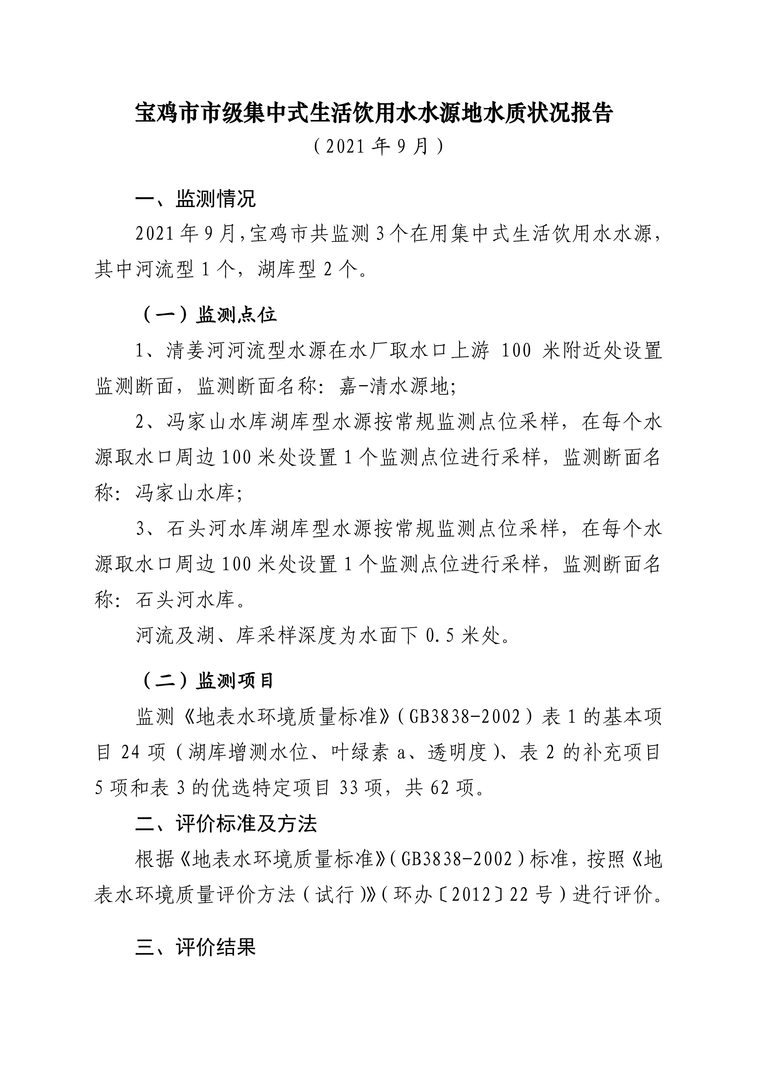 网赌平台市级集中式生活饮用水水源地水质状况报告(2021年9月)