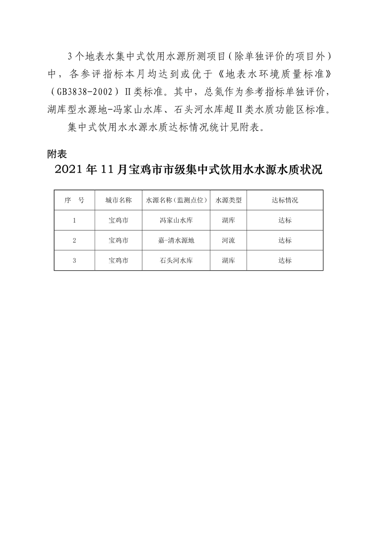 十大网赌平台排行榜市级集中式生活饮用水水源地水质状况报告(2021年11月)
