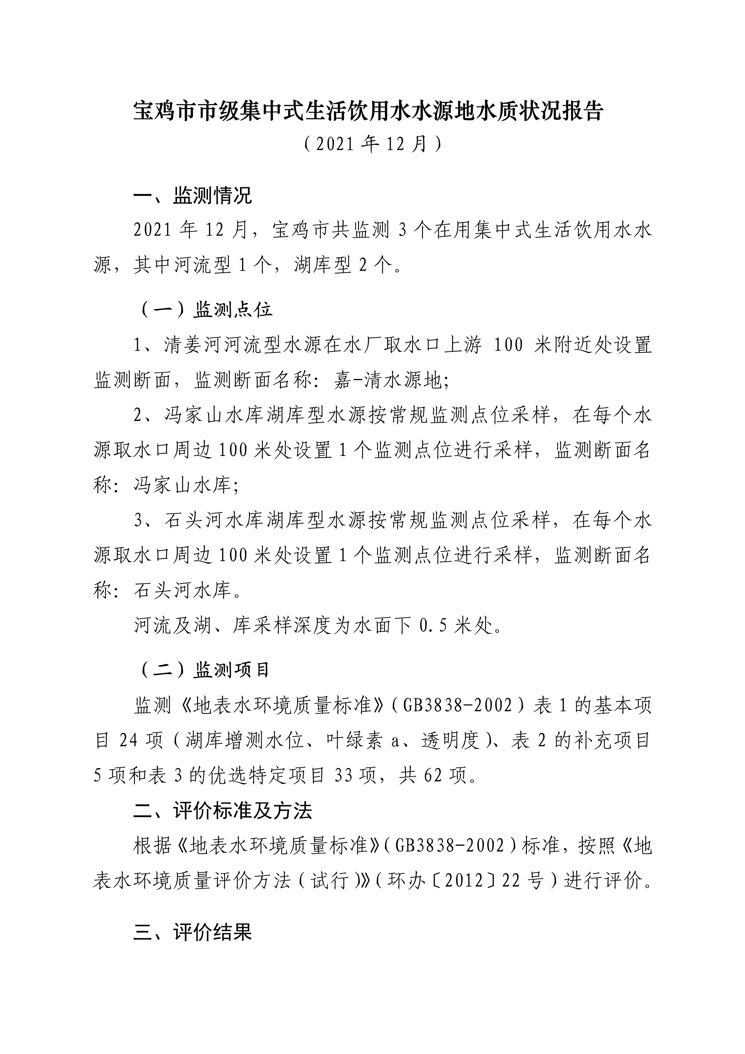 十大网赌平台排行榜市级集中式生活饮用水水源地水质状况报告(2021年12月)
