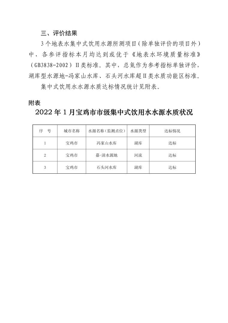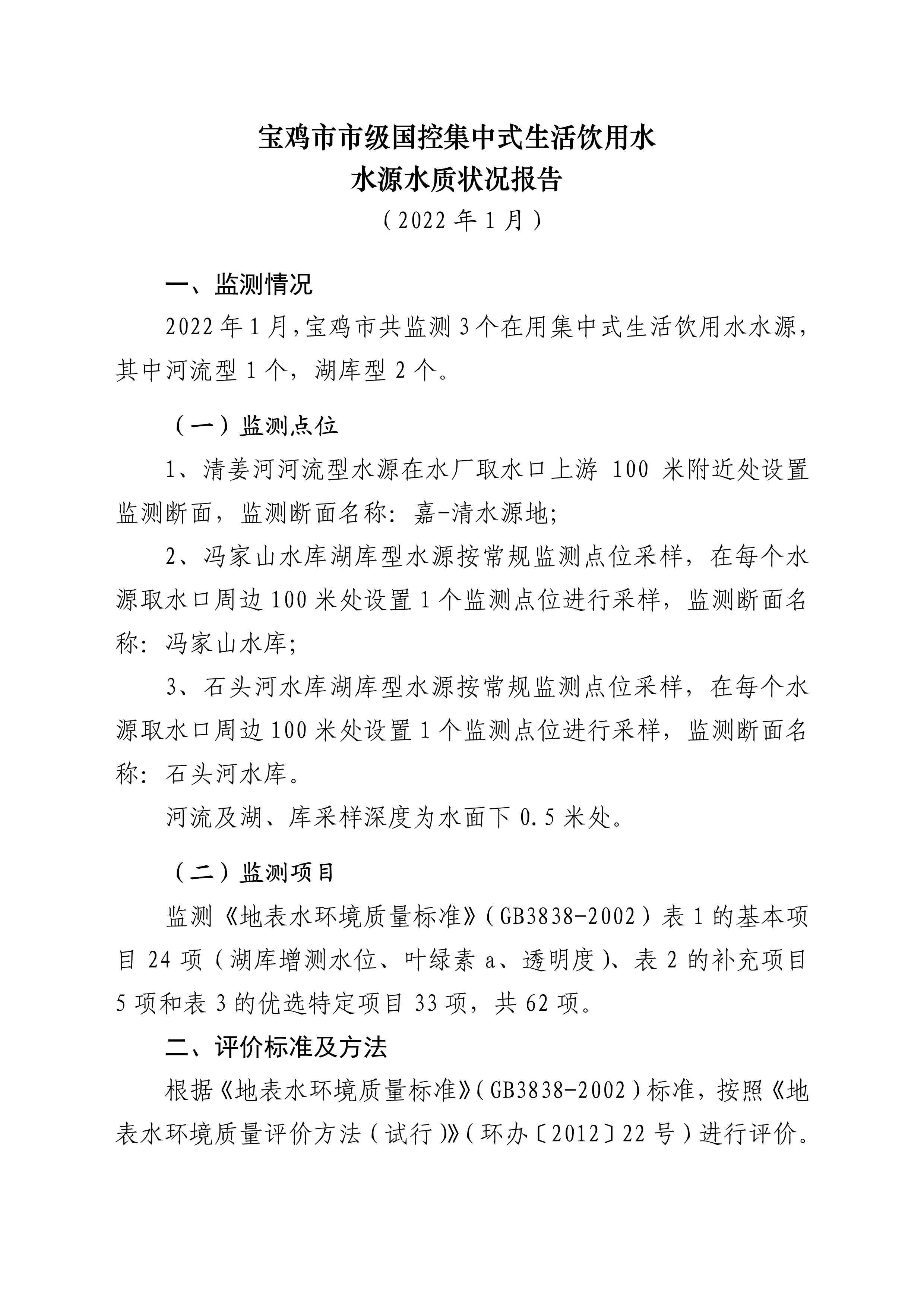 网赌平台市级国控集中式生活饮用水水源水质状况报告(2022年1月)