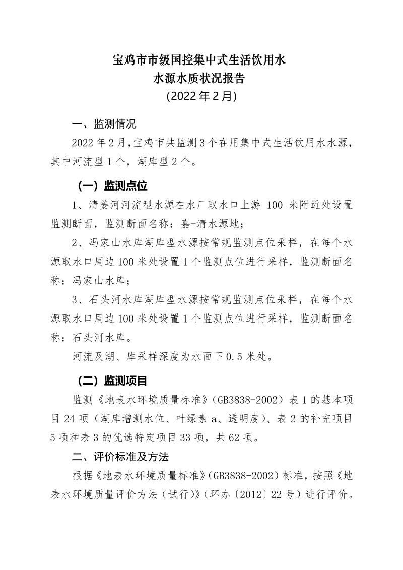 十大网赌平台排行榜市级国控集中式生活饮用水水源水质状况报告(2022年2月)