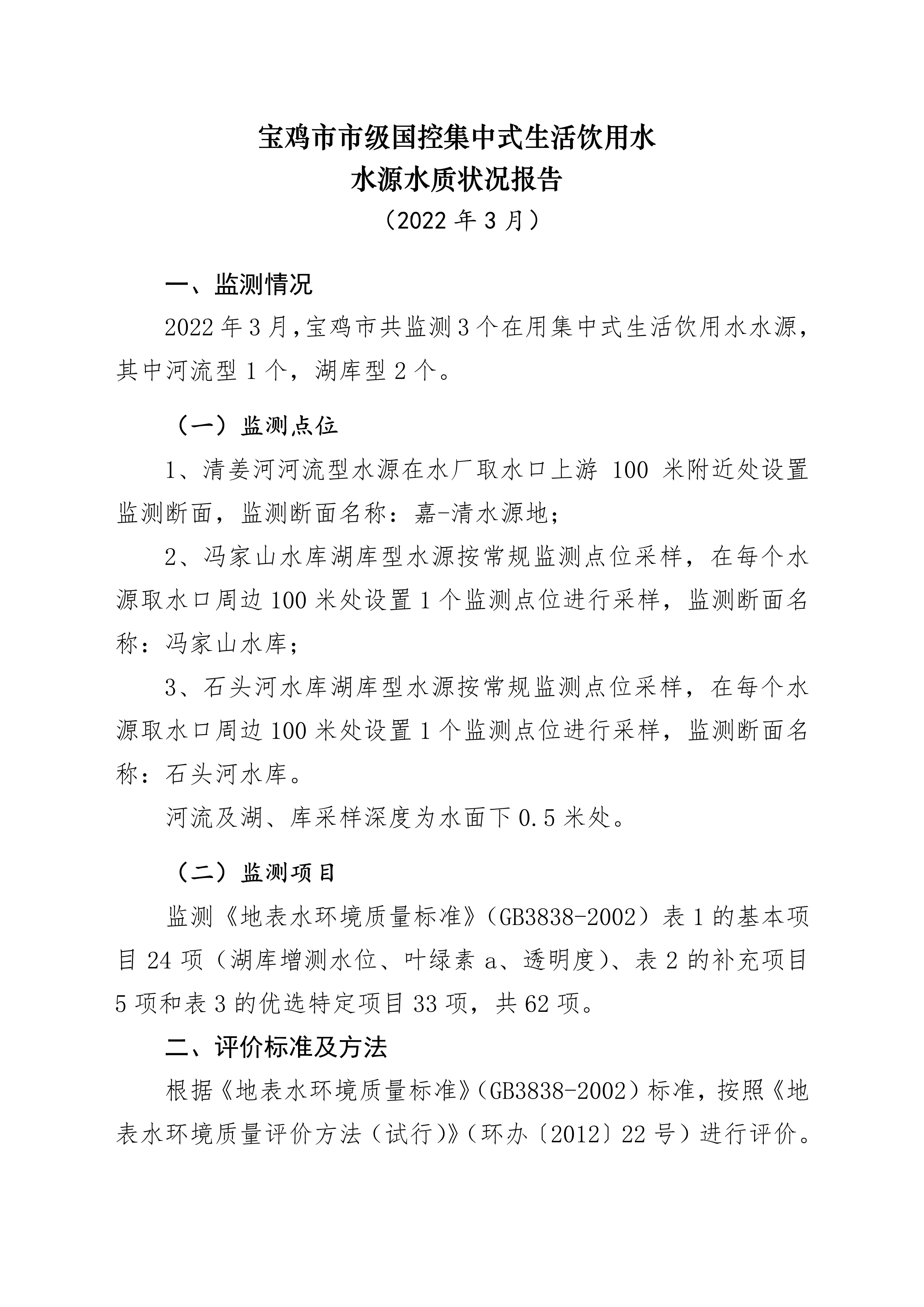 网赌平台市级国控集中式生活饮用水水源水质状况报告(2022年3月)